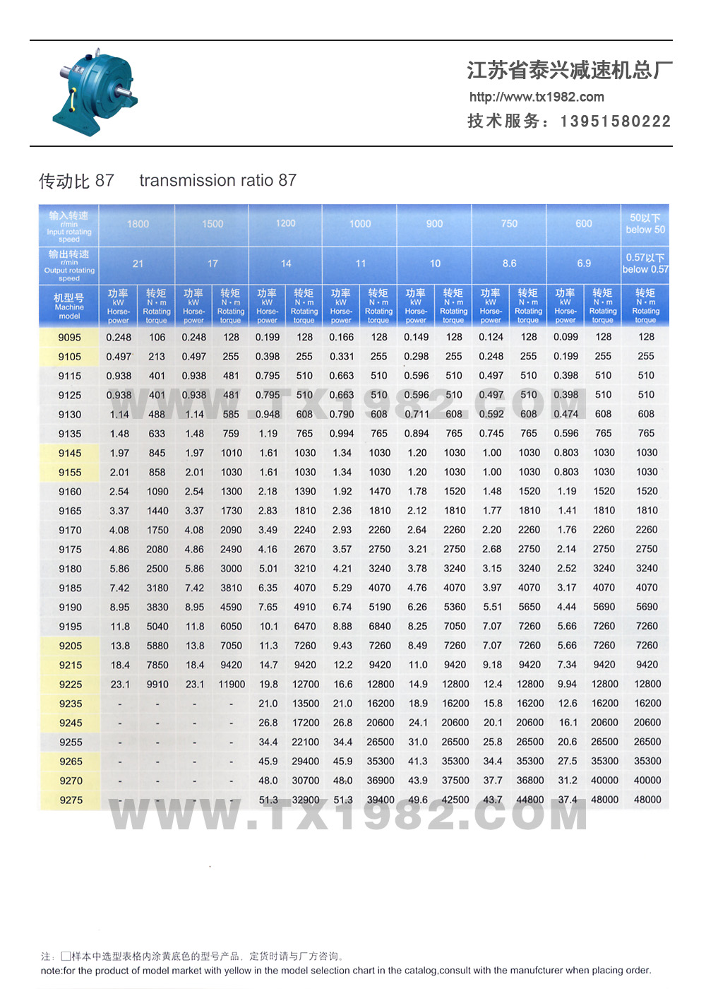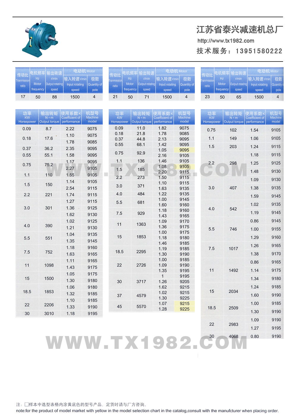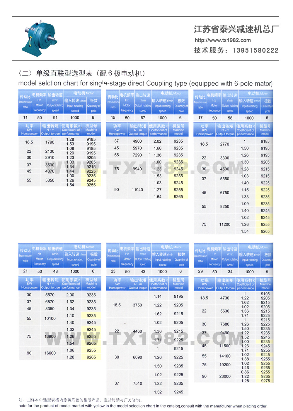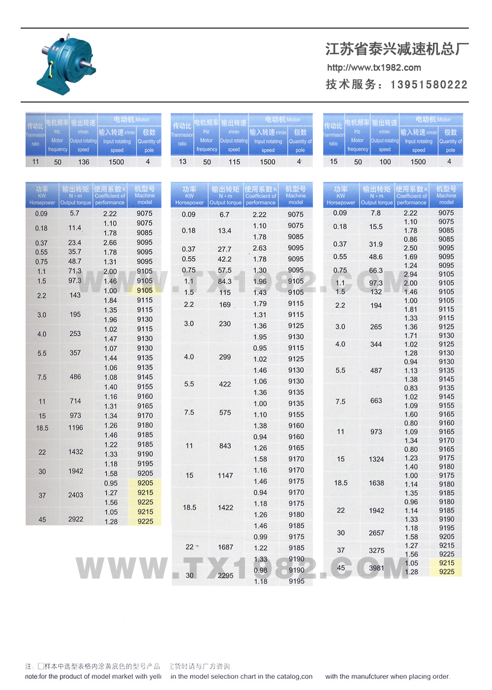 2、增加了机型号和电机功率的匹配,使选型更加合理;