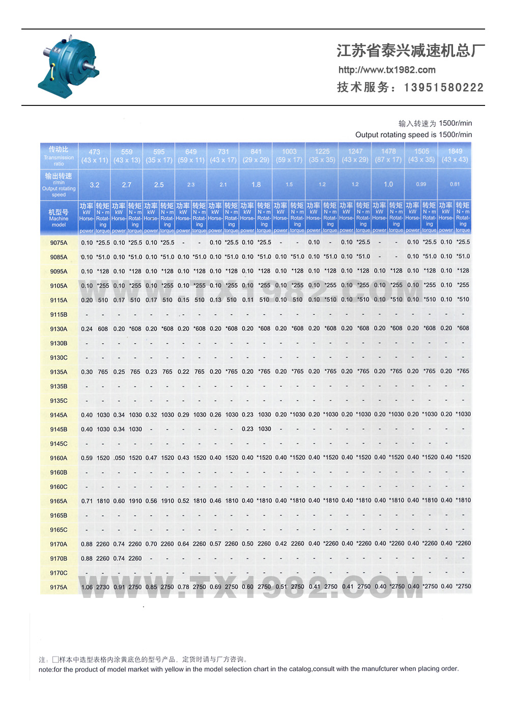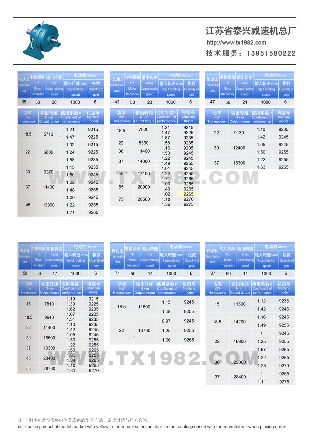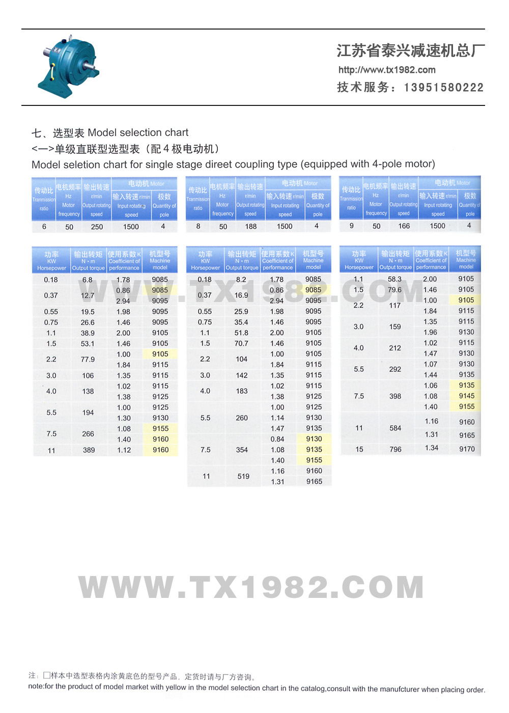 2、增加了机型号和电机功率的匹配,使选型更加合理;