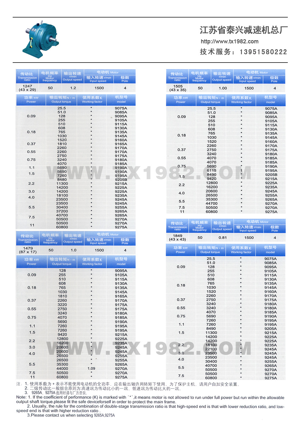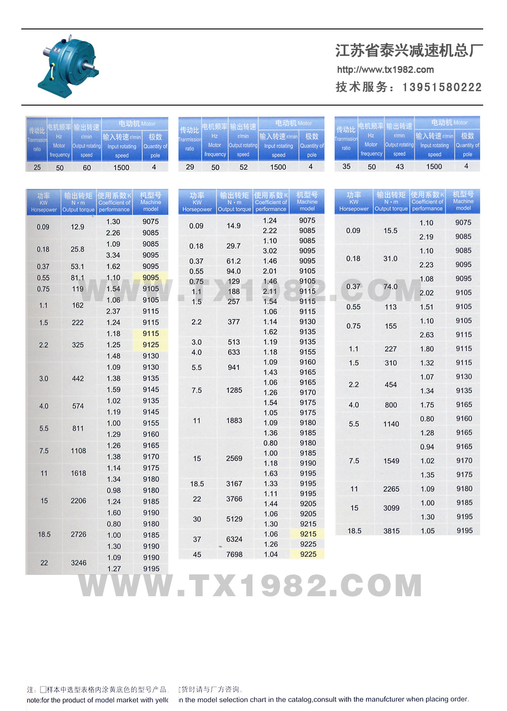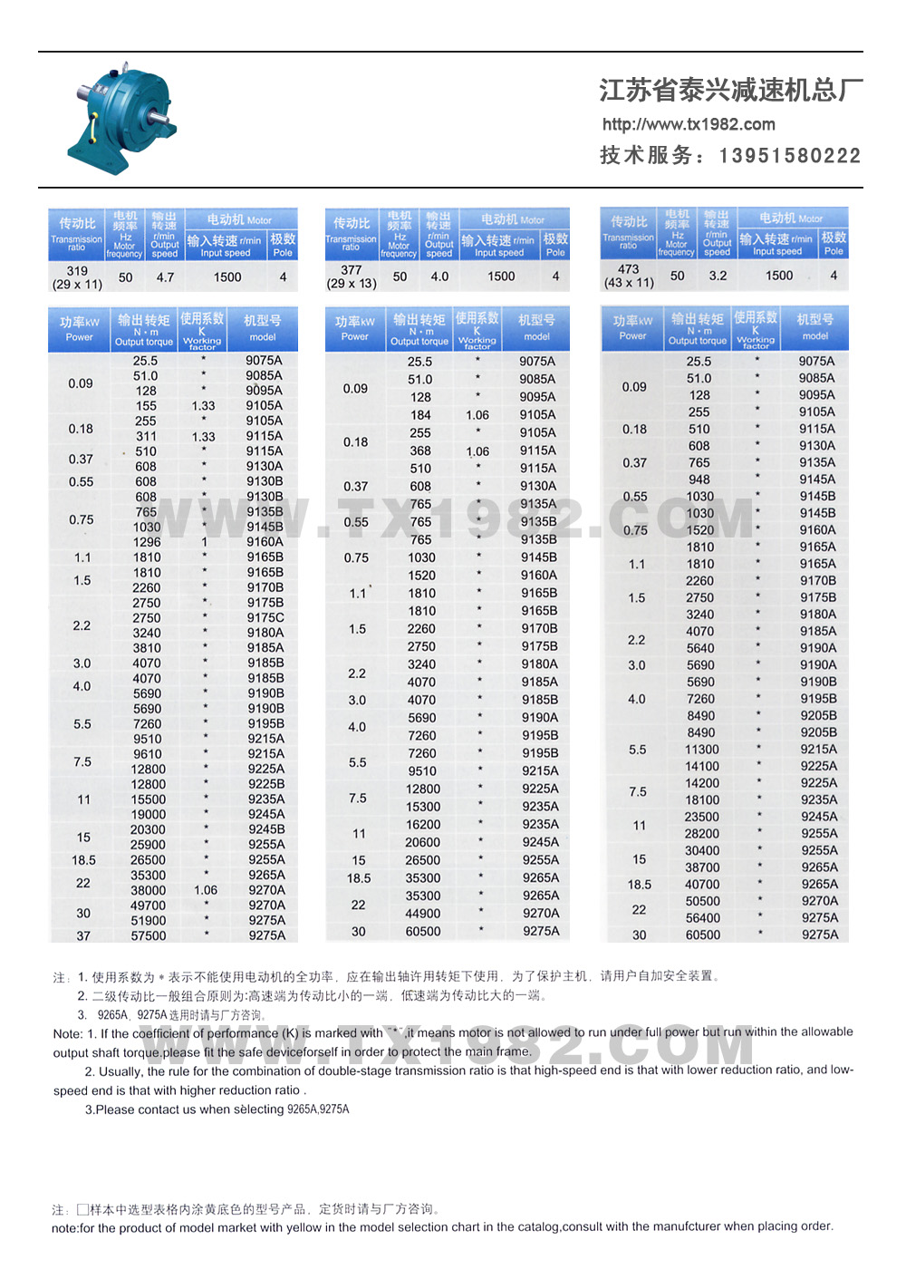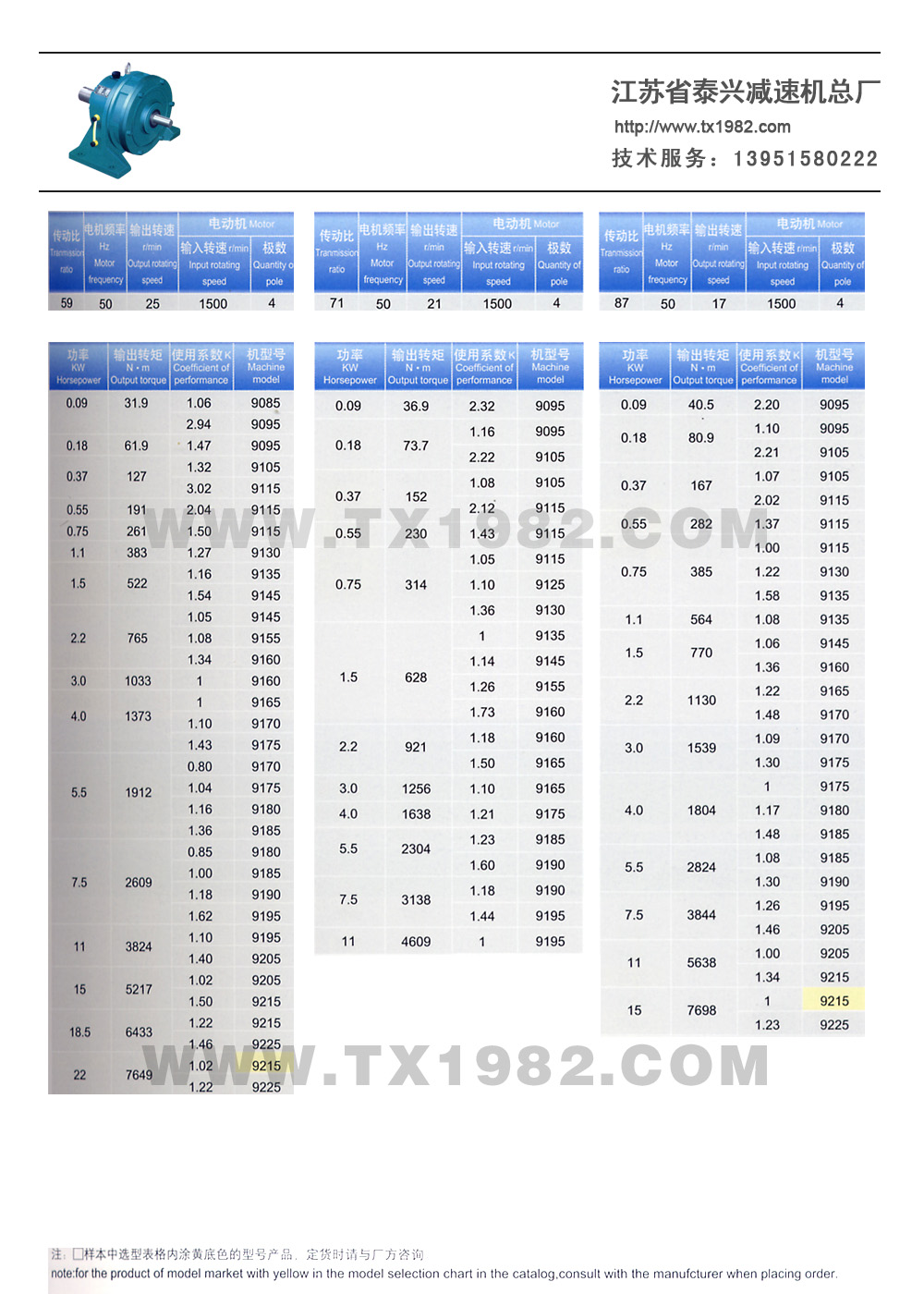 2、增加了机型号和电机功率的匹配,使选型更加合理;
