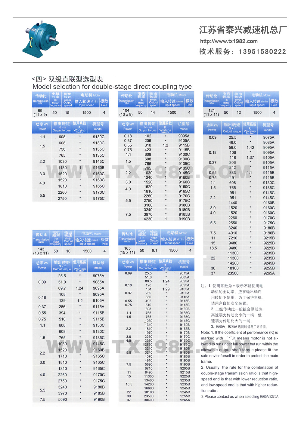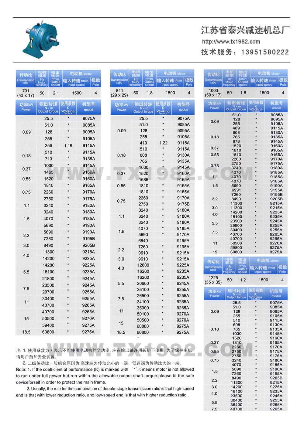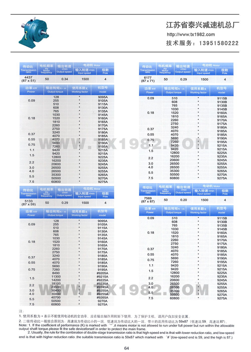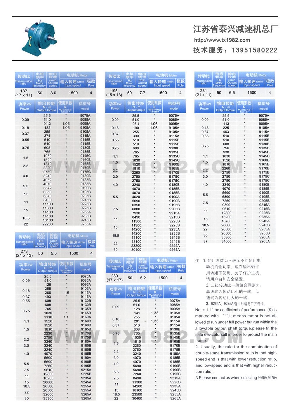 3、传动比范围更大,配置更合理,增加了小传动比6、8和其它中间传动比,使单级减速传动比6~8/,达18种,双级减速传动比99~7569,达32种;根据需要可以采用更多级组合。