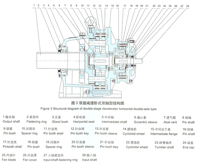 摆线针轮减速机全部传动装置可分为三部分:输入部分.减速部分、输出部分。