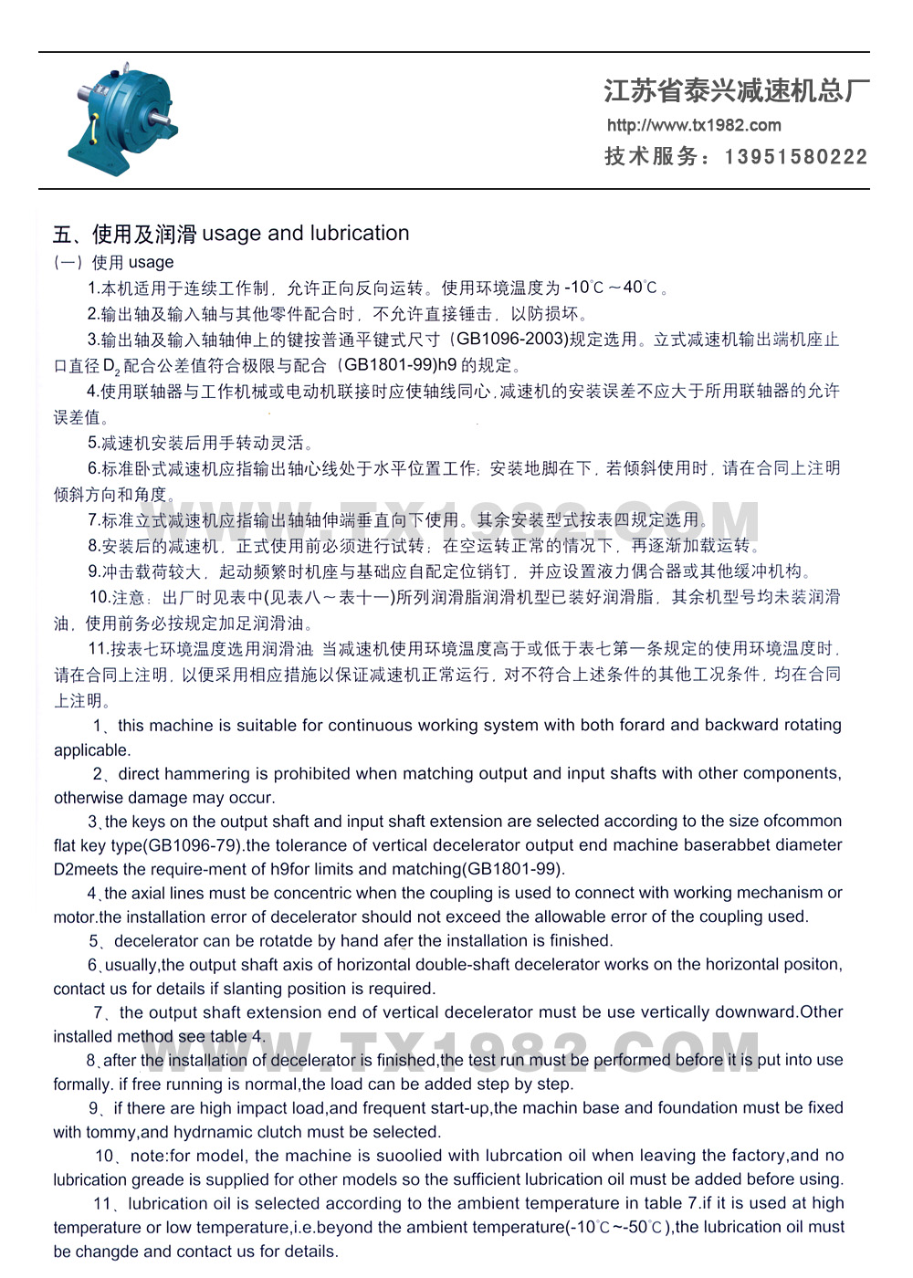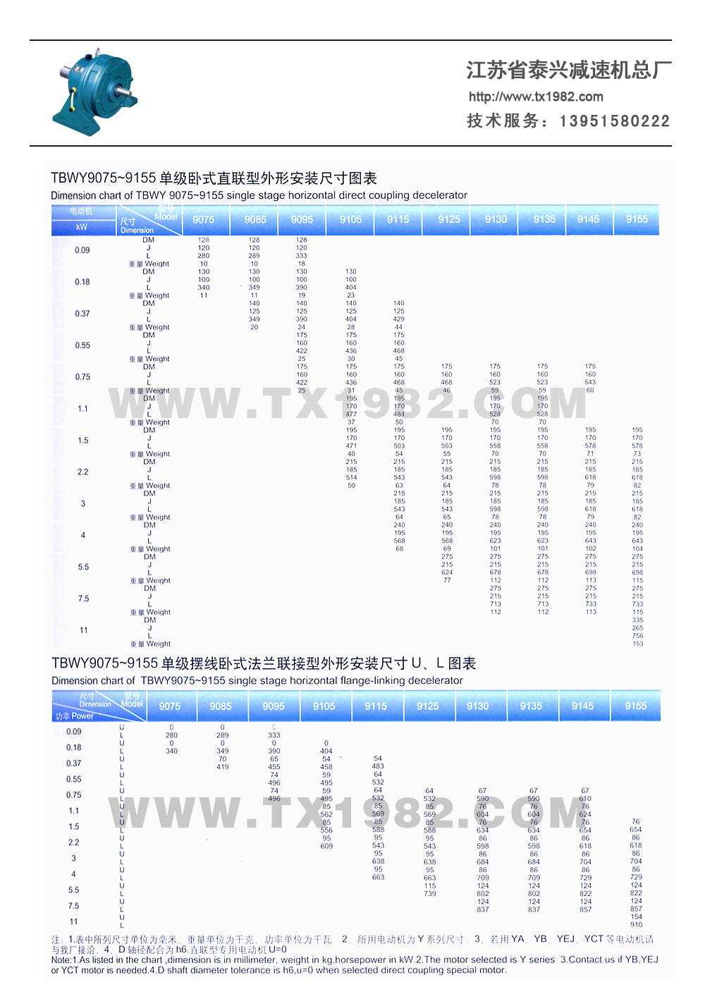 直联型减速机可与丫系列专用电动机组装在一起,同时可与各类型标准电动机,如Y系列、YA系列、YB系列,YFJ系列.YCT系列,YD系列、ZD系列等通过连接法兰联接。