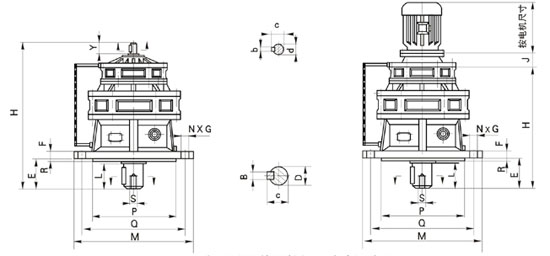 BLE、BLED、XLE、XLED型(双级)外形及安装尺寸